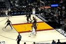 米切尔反击送精准助攻,阿伦接球滑翔劈扣得分