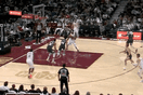 NBA常规赛,雄鹿客场挑战骑士的比赛正在进行中。比赛的第一节,普林斯突破分球,西姆斯底线空切迎着阿伦完成暴扣。