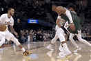 鲍尔运球单挑字母哥,迎着防守后撤步三分命中